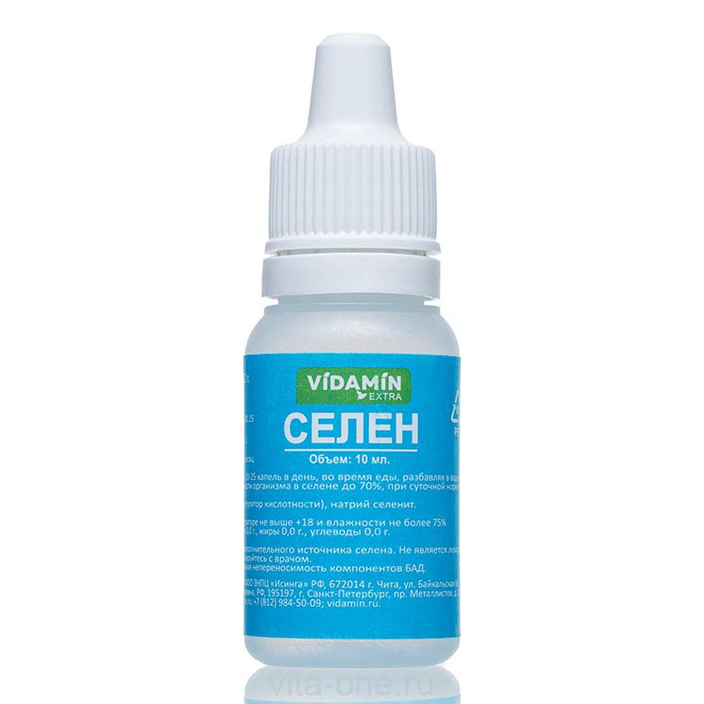 10-25 капель в день, во время еды, разбавляя в воде, чае и соках. Удовлетворяет суточной потребности организма в селене до 100%, при суточной норме 70 мкг. селена. Продолжительность приёма: 1 месяц.